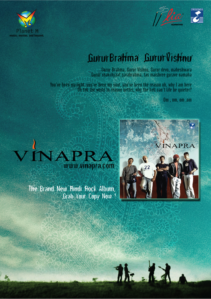 Music album cover design for Indian rock act "Vinapra"
